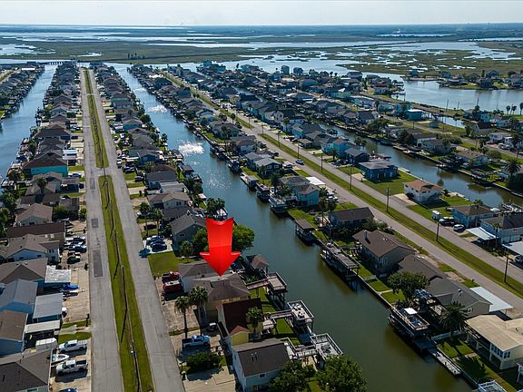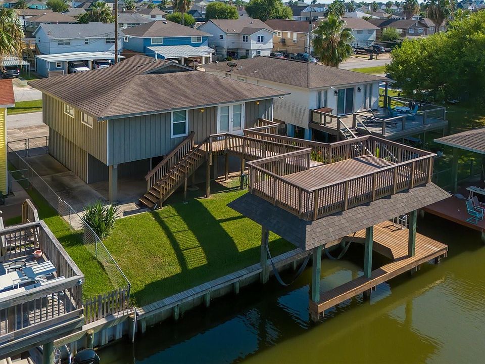 Great opportunity to live on the water. Come see this full three bedroom, two full baths upstairs on one level. Open concept living room, breakfast and kitchen. Lots of updates over the past years. Boathouse, boat lift and dock were done in 2019 ,completed January 2020. New stairs and back porch landing were done in April 2025.New carpet in April or May 2025. New roof, June 2025. New AC/ furnace system inside and out and ductwork July 2025. Downstairs has half bath, and one garage was converted to storage/workshop, that can easily be converted back to another full garage. Lots of parking space and room for a full RV. Enjoy fishing, boating and great family entertaining at this home. Close to Galveston and Houston. Come see this waterfront/canal home today. Subdivision has community pool, park, shopping, gas station, restaurants and more. Bayou Vista also puts on many events throughout the year. You will love the friendly activity for adults and kids all year long.