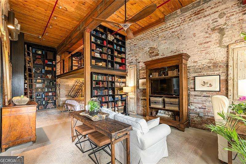 Step into a loft that idyllically balances historic character with modern luxury at The Stacks, nestled in the heart of Cabbagetown. Completely renovated, this space invites you to live effortlessly in style, with soaring ceilings, exposed brick walls, and concrete floors that set the stage for an airy, sun-drenched home. The kitchen is a chef's dream and a natural gathering spot, featuring a built-in pantry, quartz countertops and backsplash, and all-new appliances. Automatic shades let sunlight pour in by day and create a cozy glow by night, perfect for relaxed evenings or entertaining friends. The renovated bathroom blends modern finishes with rustic charm, boasting new tile, fixtures, and antique raw wood sliding barn doors in both the bath and utility areas. Floor-to-ceiling bookshelves make a bold statement while offering abundant storage, and a lofted bonus space flexes beautifully as an office, creative studio, or retreat. The updated laundry doubles as a chic dressing area, complete with built-in closets and a dramatic light fixture, making daily routines feel effortlessly stylish. Enjoy quiet, ground-level living with your own exterior access, steps away from a serene, landscaped courtyard and sparkling pool. Take in breathtaking Atlanta skyline views from the rooftop terrace, stay active in the well-equipped fitness center, and rest easy knowing the recently replaced HVAC keeps life low-maintenance. From sun-filled mornings to cozy evenings, this loft delivers an unparalleled blend of industrial charm, modern updates, and a lifestyle that makes every day feel extraordinary.