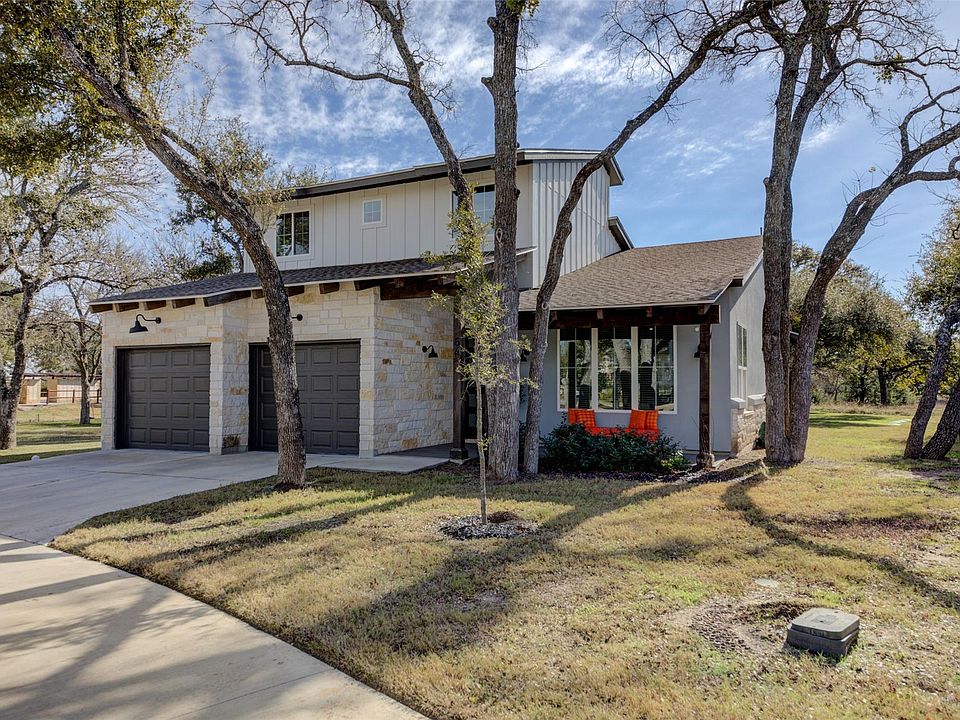 Welcome to your dream home in the Cottages at Bunker Ranch. This luxury lock-and-leave residence offers an unparalleled lifestyle combining modern elegance with the serene beauty of the Texas Hill Country. Close to downtown Dripping Springs, this home provides easy access to everything you need. Conveniently located 27 miles from downtown Austin and 31 miles to ABIA make your commutes a breeze. Inside, discover a meticulously designed interior featuring durable dark luxury flooring that exudes sophistication and warmth. Remote-controlled blinds allow you to effortlessly adjust natural light from the expansive south-facing windows. The kitchen is a chef's delight, equipped with natural gas cooking appliances, quartz countertops throughout, and a full quartz backsplash adds modern elegance. Upgraded faucets and lighting fixtures throughout the home enhance its appeal. The primary bathroom showcases additional mirrors, providing both functionality and a sense of spaciousness. The south-facing patio is a private sanctuary, offering tranquil nature views. Outfitted with fully automatic screens, a gas stub-out for your grill, and porcelain tile flooring, it's an ideal space for outdoor entertaining or peaceful relaxation. Mature trees surround the home providing ample shade during the summer months and enhancing the natural beauty of the landscape. A low 1.74% tax rate makes this luxury home not only a beautiful choice but a financially savvy one as well. The HOA maintains all landscaping, ensuring pristine grounds year-round without the upkeep. This true lock-and-leave gated community offers peace of mind and exclusivity. Living here means you're truly in "The Gateway to the Hill Country." Explore the legendary Hamilton Pool Preserve, enjoy local wineries and breweries, or take part in the vibrant community events that make this area unique. This is more than just a home; it's a lifestyle choice that offers luxury, convenience, and the natural beauty of Central Texas.