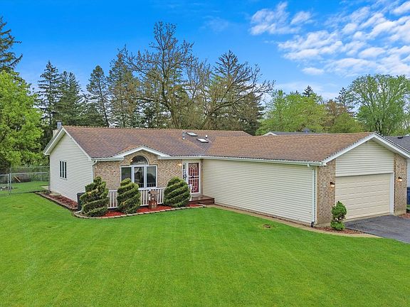 ONE LEVEL LIVING - FINISHED BASEMENT - FENCED IN YARD - Already passed village inspection, & seller offering ONE YEAR HOME WARRANTY for peace of mind! Welcome home! Vaulted ceilings, skylights & easy one level living await in this sprawling 3 bedroom 2 bath ranch with full FINISHED BASEMENT! Approximately 2,500 finished square ft of living space! REAL HARDWOOD floors throughout most of the main level! Coveted open concept layout; perfect for entertaining; with cozy corner woodburning fireplace for ambiance. GRANITE counters, touchless faucet & oversized kitchen island with plenty of seating! Main floor master suite with OVERSIZED walk in closet & private master bathroom. Convenient main floor laundry room; (washer/dryer not included). MASSIVE FULL FINISHED BASEMENT w/ Rec Room, BAR & separate storage room. EASY to add a 4th bedroom or home office as needed! Newer water heater & softener system! NEW ROOF just 4 years old. Head outside to relax with no neighbors behind & a fully fenced in yard with a HUGE patio; plenty of room for summer BBQs & pets! Newer insulated garage door, smart WIFI MyQ opener & Nest thermostat stay. Already passed village inspection!! FHA appraisal already on file at $265k which transfers to next FHA buyer saving $$$! One year home warranty included for peace of mind! Nothing to do but move in!