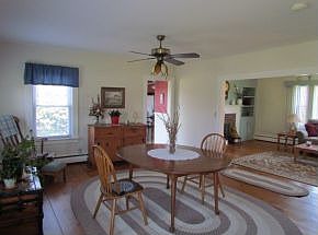 Move right in to this immaculate home with character of the old. Inviting fireplaced living room overlooking pond and woodlands, home of interesting wildlife. Expansive dining room with original pine flooring, large kitchen with eating area and fully applianced. Delightfully glassed in sunroom looking out to back patio. 4 bedrooms on 2nd floor can be accessed by 2 staircases. Large 3 level barn desirable for multiple uses, as well as a workshop.