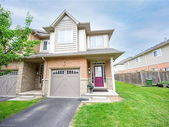 Three bedroom end unit townhouse in a desirable Stoney Creek location close to all conveniences offers two and half bathroom stainless appliances new central air conditioning and high efficiency furnace condo fee covers roof exterior maintenance, grass cutting fully fenced private yard carpet free well maintained unit