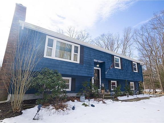 Welcome to this stunning raised ranch, boasting oversized proportions and nestled on over 2 acres of serene land. The home underwent a total renovation in 2020, featuring new 200 amp electric, plumbing, a new septic tank, and much more. Carolina Hickey soft-close kitchen cabinets and drawers enhance the kitchen, which also boasts 2-year-old appliances. Acacia hardwood floors grace the large open kitchen/living room area, while sliders in the dining area lead to an expansive 32'x20' composite deck, perfect for entertaining. Situated approximately 350 feet from the road on a dead-end street, this house offers a peaceful setting abundant with wildlife. Enjoy cozy evenings by the wood-burning fireplace or stay warm with the pellet stove installed in the basement, which heats the whole house. While maintaining tranquility, all shopping needs are just a 10-minute drive away. Experience the perfect balance of serenity and convenience, offering charm at every turn. This property provides the ideal combination of peaceful living and accessibility to amenities, making it a must-see for discerning buyers.