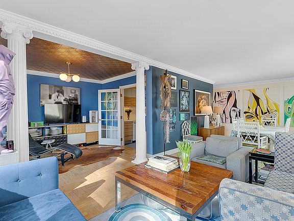 Additional highlights include honey toned, herringbone hardwood floors, through-wall air conditioning, crown and dental moldings and exceptional storage space throughout.