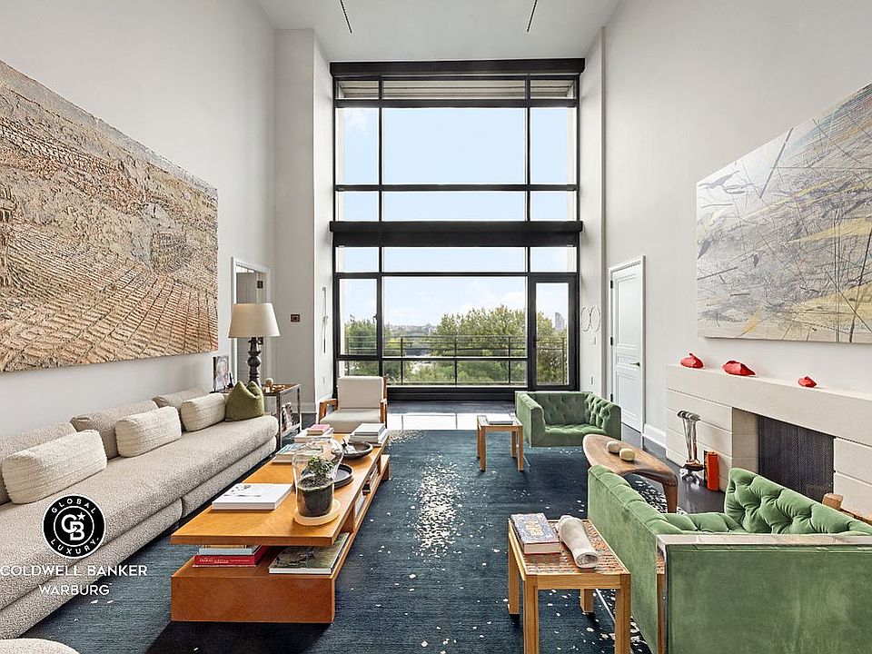 • Residence 8E/F is complete with a laundry room, two eighth floor powder rooms, an architectural wood staircase, temperature-controlled wine storage for 150 bottles & a sauna. Features include floor-to-ceiling windows, Venetian plaster walls, handsome dark-stained hardwood floors, 10' ceiling heights and electric shades throughout.