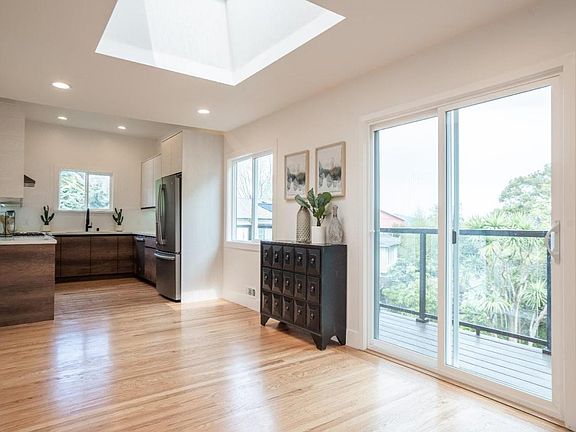 Modern, spacious, airy 3 bedroom 2.5 bathroom house for rent in the Millbrae hills, with lots of natural light from skylights in the living and dining room floors, as well as huge windows that overlook a lush green backyard and park. Easy access to the balcony from the living room floor, perfect for outdoor dining or pets. New kitchen appliances and gas stove, with beautiful details in the kitchen island and nook. A wood burning fireplace centers the living room. A 2 car garage easily accesses the kitchen for offloading, driveway parks 2 more cars, and street parking is widely available. Guest half bathroom is located conveniently on the entertaining floor as well.