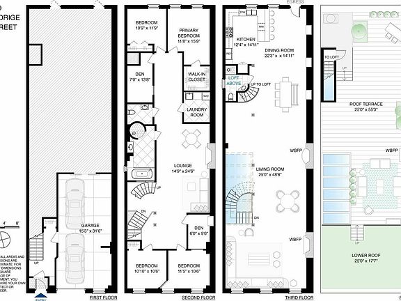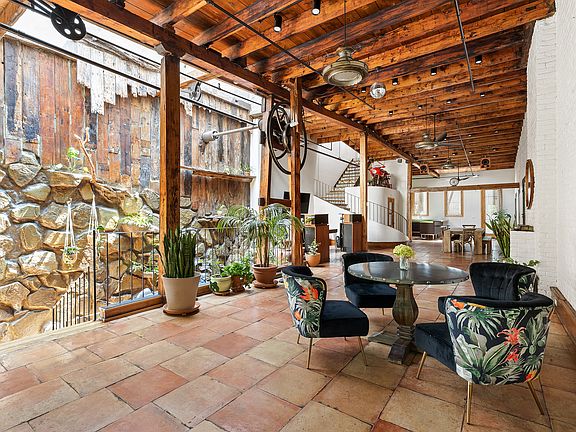 Rarely available, fully furnished historic building with a private garage for rent in the heart of the Lower East Side This spectacular 6,600 square foot four-story building, affectionately known as "The Carriage House," is a piece of New York history now available to rent for short and long-term stays! Once used to house carriage horses in the late 1800s and then later as a printing press during the industrial boom, The Carriage House features soaring original exposed wood beamed ceilings measuring 13' and 15' on the 2nd and 3rd floors respectively. Elements of the home's past lives are echoed throughout with original details like the motor and gears from the horse elevators, an exposed pulley system that once operated a flatbed elevator for the printing press, two skylights, exposed brick walls, and four wood-burning fireplaces. The Carriage House is a completely unique offering available on Streeteasy for rent for the first time. Each floor spans approximately 2,000 square feet and has been transformed into the most striking 4-bedroom 2.5-bathroom residence on the market. The home also offers two additional home offices as well as a laundry room for ultimate convenience. Updates like the custom 14-foot waterfall wall, radiant heat flooring, a fully integrated professional-grade sound system, and a chef's kitchen with Valcucine cabinetry, SubZero and Miele appliances transport this historic masterpiece to modern-day. Walk one flight up the Moroccan tiled spiral staircase on the third floor and find a private, 1,500 square foot landscaped roof terrace that boasts an outdoor bar, wood-burning fireplace, and an integrated sound system perfect for entertaining.