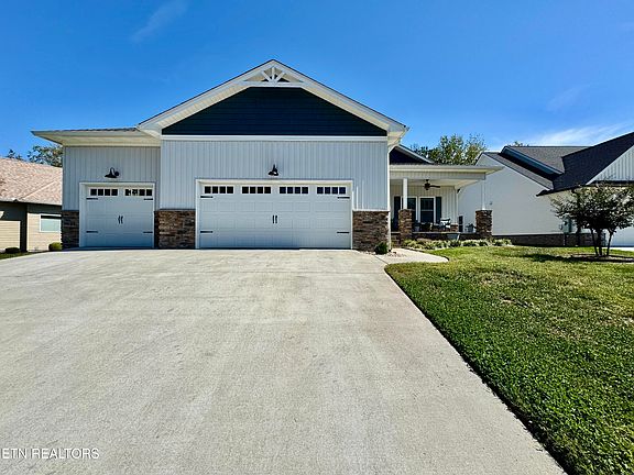 Welcome to this stunning Craftsman-style cottage in Tellico Village, featuring board-and-batten siding with stone accents and peaceful landscaping accented by river rocks. A welcoming covered front porch and full irrigation system set the tone for easy, relaxed living.