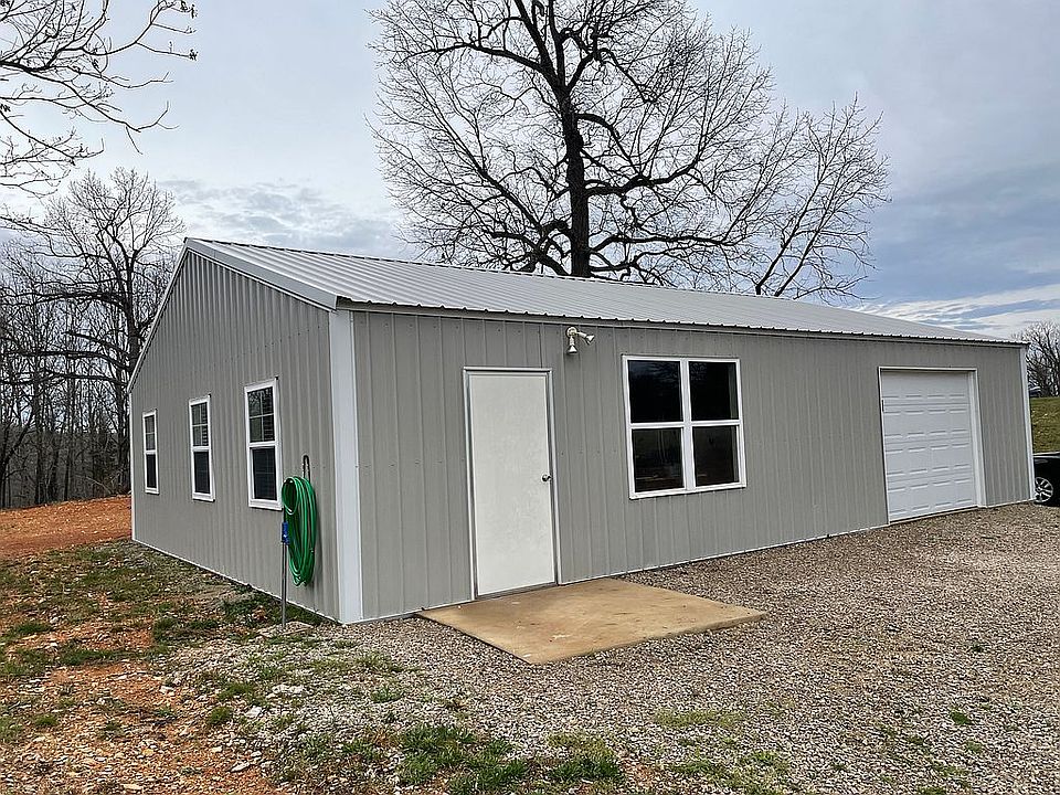 1 bed 1 bath, 600 sq ft living space and 600 sq ft garage. Property has septic and water. Also has a pond.