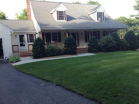 BUYERS GOT COLD FEET, HOME INSPECTION WAS NEVER DONE! Main level has a beautiful granite kitchen with SS appliances, den, living room, full bath, one of two masters with it's own private sunroom, mud room with laundry, back deck, farmers porch, and access to the 2 car garage with garage doors on both sides! Second level has 3 additional bedrooms, one being a second master suite with sitting area and bath, a third full bath, and plenty of closet space. The lower level finished basement has a large family room with slider to back yard, and an additional large bonus room. Other features included with this beautiful cape are a pellet stove in the living room, wood stove in the basement, central vac, generator hook up, plenty of additional parking space, just under 6 acres of privacy and beautiful landscaping all set back from the road! There are to many features to list. This is a must see property. Nothing to do here except bring your tooth brush and unpack.