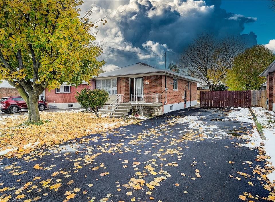 Highly sought after, rarely available one floor beauty in Hamilton Mountain’s family-friendly Hampton Heights. Set on a quiet, tree-lined street known for its welcoming neighbours, parks, and great schools. The main floor has hardwood flooring, large windows that bring in natural light, and a convenient kitchen pull out cabinet for built-in dishwasher. Huge, bright living/dining room perfect for relaxing and entertaining. Three spacious bedrooms. Lower level with walk up from a separate side entry—ideal potential in-law suite or teen retreat. The lower level features several above grade windows creating a bright space with two bonus bedrooms, possibly one more, area for future second bathroom, huge recroom with decorative fireplace, 100 amp circuit breaker panel. Large, paved, double width driveway with parking for six cars, and access to huge fenced backyard, paver brick patio with real grapevine canopy. 50'x100' lot with space for future pool and garage or workshop. Don't miss this opprtunity in this fantastic mountain neighbourhood. All sizes and measurments approximate and irregular.