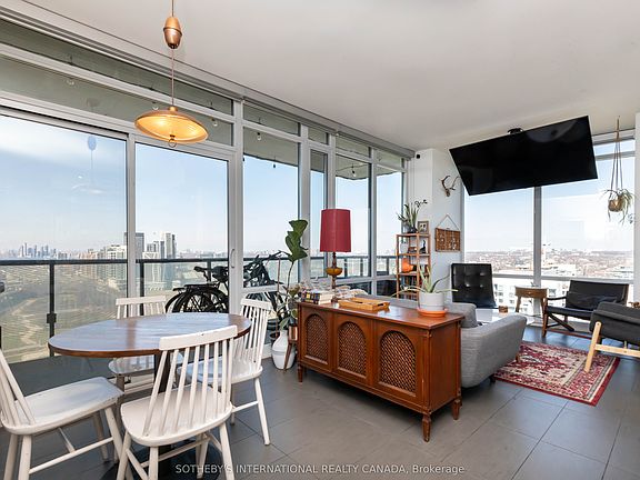Discover elevated city living on the 27th floor of this corner unit with breathtaking endless Westerly Views. As you step inside, floor-to-ceiling windows flood the open kitchen with, stainless steel appliances and a convenient pantry, with an abundance of natural light. 2 bedrooms, 2 bathrooms for the utmost comfort. One parking spot pretty close to the elevator and a handy locker for storage. Enjoy unobstructed panoramic views of the cityscape and Old Fort York Park. 9-foot smooth ceilings and window blinds add an extra touch of elegance. Your new home is not just a condo; it's a lifestyle! Stroll to the Harbourfront Centre, catch a show at the Budweiser Stage, or embrace the Canadian National Exhibition. Convenience is at your doorstep with a short walk to Loblaws ,Bathurst & King Streetcar and indulging in your favorite restaurants. Lake Ontario, scenic trails, and Billy Bishop Airport are all within reach. 24 Hr Concierge, Amenities Include: Gym, Party Room, Media Room, Sauna, Boardroom, Outdoor Terrace, Guest Suites, Visitor Parking.