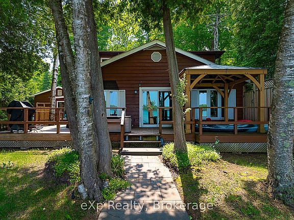 WATERFRONT on Francis Lake. MOVE IN READY for you to start making your memories, this home or year round home hosts stunning views from inside and out. The 2 storey renovated 5 bedrooms, 2 bathrooms home is ready to be enjoyed. The lower level has a large family room showcases a wall of windows providing an abundance of natural light and views of the lake. Walk out from the family room and enjoy your private waterfront oasis. The large lot offers ample space to entertain all of your guests, whether on the large wrap around deck or sitting around the fire by water. The new covered outdoor living space is ideal for cooking, entertaining and enjoying the built in fireplace. Garage is 24'x16' and for additional storage there is a 12' x 12' shed. Centrally located to the amenities of Owen Sound, Wiarton and Sauble Beach, this waterfront property is a MUST SEE!