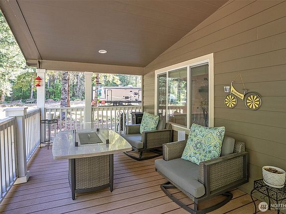 5 Acres on the Nisqually River! Open-concept living with all the bells and whistles. Primary suite features a 5-piece bath with soaking tub. Flexible layout with 2 bedrooms plus office or optional 3rd bedroom. Two full walk-in tiled showers, quartz counters, soft-close cabinetry, quality finishes throughout. Metal roof/gutter guards and oversized Trex front porch, cement siding. The well house is a unique bonus—complete with bathroom, shower, and loft. Outdoors enjoy two private driveways, 2 RV dumps, firepit stays. Just 5 minutes to Mineral Lake, wooded paths to the river and plenty of room to build a shop. Adventure, privacy all in one! Wildlife, fishing and hunting nearby. 5 Acres for sale next door Parcel 038871002002 see Listing.