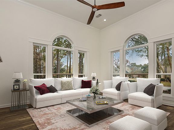 Completely remodeled custom home in Cochran's Crossing! Located in the heart of The Woodlands, this home features a brand new roof and gutters, 2 new Trane a/c units, 2 new water heaters, new whole house water softener and filtration system, all new engineered wood floors, new interior doors, designer light fixtures, sky high ceilings, all new soft close cabinetry and drawers, 3 car garage w/epoxy floor + porte-cochere, and much more! Both formals open to one another, with a marble fireplace and coffered ceiling; the study is stunning w/custom built-ins and faces the front of the home. Spectacular open kitchen with Taj Mahal leathered counters, huge island, all new appliances (fridge included), pot filler and warming drawer. Primary bedroom suite down w/customized closet and breathtaking bath; 3 bedrooms with 2 remodeled baths and game room up with beverage fridge. Screened in porch with new summer kitchen overlooks the beautiful pool.