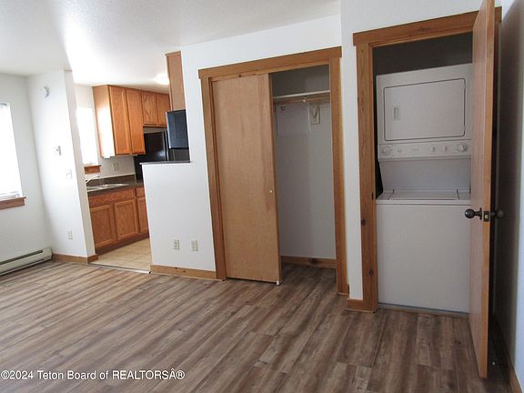 Located minutes from downtown Victor, this sunny, south facing ground floor END unit is ready for immediate occupancy. Remodeled in 2023- new paint, LVP flooring, & new light fixture- no carpet! Complete with kitchen appliances & stacked washer/dryer, this condo has some of the best mountain views in the complex. The Ponds is near quiet baseline road- quick access to BLM hiking, snowmobiling, etc. or hop across the street onto the paved bike path. Great access off of 7000 S. & Lupine lane. Short or long term rentals allowed, purchase for investment or a primary residence. Reasonable HOA dues include water, sewer, common area maintenance, building insurance, mailboxes, trash & snow removal. Stop paying rent and OWN your piece of paradise in the Tetons. Priced below tax assessed value!