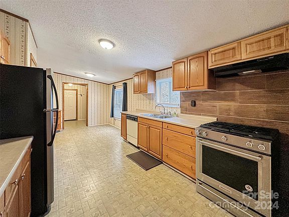 NO Helene Flooding in neighborhood or home! House sits off street high and dry! Floodless neighborhood! Not in a manufactured home community. Convenient location! 15 minutes to downtown Asheville; 25 minutes to Waynesville. Plenty of storage w/ 10x14 outside storage shed. Laminate flooring, bedrooms, living and dining area; Vinyl kitchen and baths. House easy to maintain with handicap accessibility. No stairs! Wide interior doors w/ wheelchair accessible shower. Whole house, Generac generator and large propane tank. 2022 All new windows and Drolet Woodstove installed w/ tiled surround and hearth; 2016 both bathrooms remodeled; 2021 Kitchen Aid Stove installed. Covered parking area, paved drive, rock shirting and retaining walls. Ramps, wider door openings and special handicap equipped master bath. Metal roof and wood burning fireplace. Close to the new MAHEC health center, shopping and main roads.