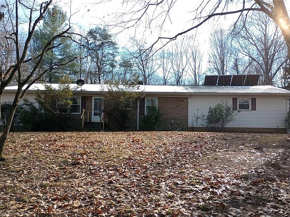 private country retreat on 3.74 acres needing a little TLC. This handicap-accessible, single-level home features 3 bedrooms and 2 bathrooms, including a king-sized primary suite with an ensuite bath and walk-in closet. Additional highlights include a home office, a 5'x12' walk-in pantry, and a wood-burning fireplace. The walk-out, drive-up unfinished basement with a garage door and wood stove offers excellent workshop potential. Energy systems include solar heat, a wood-fired water stove, and propane heat. The secluded lot also features a circular drive and an oversized storage building. see agent remarks wen submitting an offer.** OFFER HAS BEEN ACCEPTED; AWAITNG EXECUTION OF CONTRACT.