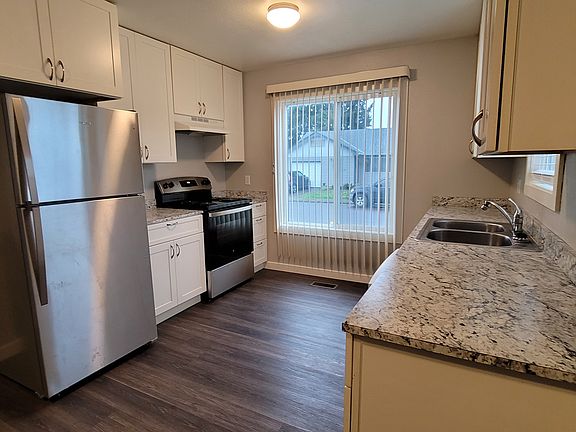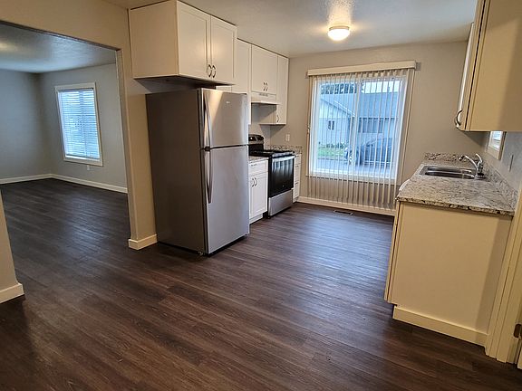 This property has been completely Cleaned up with New Paint thru out. Its features 2 bedrooms, 1 bath. Some New blinds. Its ready to go. All new Appliances. W/D hookups, Single Garage. Gas Furnace. Huge fenced backyard. Quiet older neighborhood. Close to town. Walking distance to main st. Call Candi to view and an application. Month to Month Lease. Garbage Included in Rent. All other utilities Tenant pays. NO SMOKERS/ VAPERS. 1 Pet Possible. NO Fish Tanks.