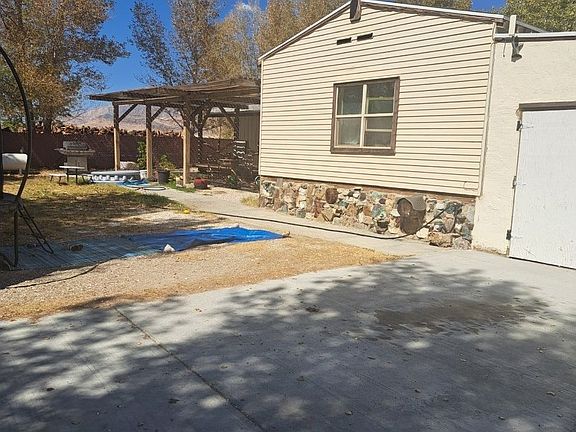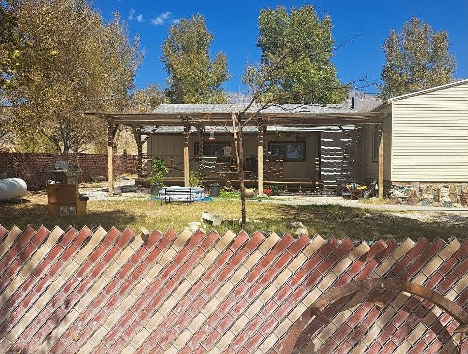 Corner-Lot Retreat with Mountain Views on Four Spacious Lots. Welcome to 170 Laws Avenue, a spacious corner-lot retreat with sweeping views of both the Sierra and Inyo ranges. Set on four generous lots with easy alley access, this property offers exceptional privacy and parking options. Inside, the main living area stays cozy with a charming wood stove, complemented by propane wall heaters in the living room and back bedroom. A large MasterCool evaporative cooler, vented throughout the home, keeps summers comfortable. The full galley kitchen features stainless-steel appliances, including a refrigerator, range, and sink. Two bathrooms are finished with tile, while wood-laminate flooring installed just two years ago adds warmth throughout the rest of the home. Outdoors, a 150-gallon propane tank supports both heating and cooking. RV enthusiasts will appreciate dedicated parking with two electrical outlets, water, and a small septic hookup. The one-car garage with a concrete floor and expansive driveway provides ample space for vehicles and projects