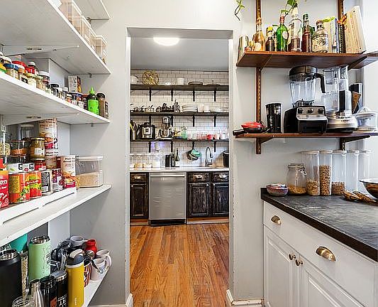 Oversized residenceUseful walk-through pantryPrewar elevator buildingBright functional kitchen