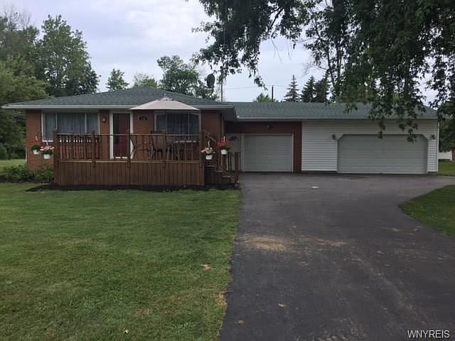 **OPEN HOUSE HAS BEEN CANCELED. UNDER CONTRACT. Brand new for you! Just installed new w/w carpeting and painted interior. Lovely 3 bedrm. ranch w/beautiful yard. Added an extra 2 car attached garage w/rear entrance for extra storage. Front 17 x 13 deck. Wired for back up generator. New roof-2018. One year old above ground pool. Furnace 2016. In '09 replaced all windows except front. Convenient tankless hot water tank - 2010. In '07 installed electrical service. Central air added in 2010. French doors from master offer a great view of back yard. Jacuzzi tub. Turnaround driveway. Great location - close to stores, thruway exit. Easy ranch living. HOME WARRANTY INCLUDED. MONEY BACK GUARANTEE. Easy to show. Priced to sell quickly!