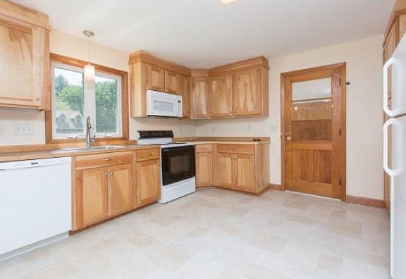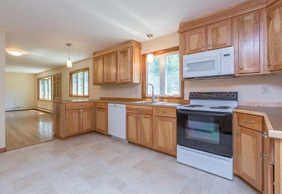 New Summer Listing! Come home to a large Cape nestled in a natural wooded setting. Summer fun starts here in the private tree lined flat backyard for playing and patio for grilling. Convenient location, easily commutable to nearby amenities and highways. Brand new kitchen to die for with custom-made birch cabinets, peninsula and pantry. Fully applianced home with new dishwasher & microwave. Newly remodeled baths, 2 bedrooms on 1st floor, office and full bath. Gorgeous hardwood flooring on first floor and staircase. A generous size living room to accommodate family and friends. All new windows throughout to save on heating costs. Newer roof and furnace. Public water. Freshly painted interior in a neutral palette will pair well with most furnishings. The work has been done! Move right in and enjoy! Won't last!
