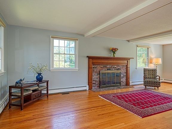 A spectacle 1.5 pastoral acres surround this attractive gambrel studded with skylights and offering the skylighted vaulted ceiling great room comprising the large kitchen flowing into family room and dining room. Hardwood floors gleam on both first and upper levels. The large cherry kitchen has abundant granite counters great for the home chef. The dining room has sliders overlooking the expanses of lawn, The front to back beamed living room is highlighted by fireplace and large bow window. The tranquil office and powder room complete this floor. The upper level features sunny main bedroom with walk-in closet and bath. The two other bedrooms with full bath complete this level. The house has been freshly painted. The deck enjoys the back yard with stone wall and fenced area. There is also large shed and note the newly installed septic.This house is ideal for commuting, just a short walk to Annie Moore conservation land. or short ride to Bolton's many orchards and the Winery.