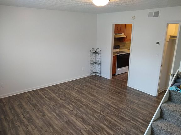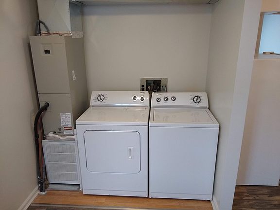 Nice townhouse style apartment in great neighborhood. The main level has a nice kitchen and living space with in unit washer and dryer. The apartment has a new high efficiency heat pump, providing the tenant with low energy bill and comfort. Two bedrooms are upstairs with hardwood floors. Also upstairs is a newly renovated bathroom with ceramic tile shower and floor. The apartment features several closets with ample storage and LED lighting for attractive energy efficient lighting. Several updates in the past month, complete updated paint, new flooring on the first floor, new carpet on the stairs, new blinds! The apartment is located in a nice quiet neighborhood cul de sac. Contact us for more information, for a viewing and to complete an online application (smartmove.com). Thanks Tenant pays for all utilities, W/S/G is one bill and Electricity