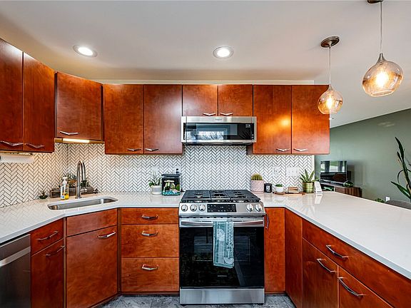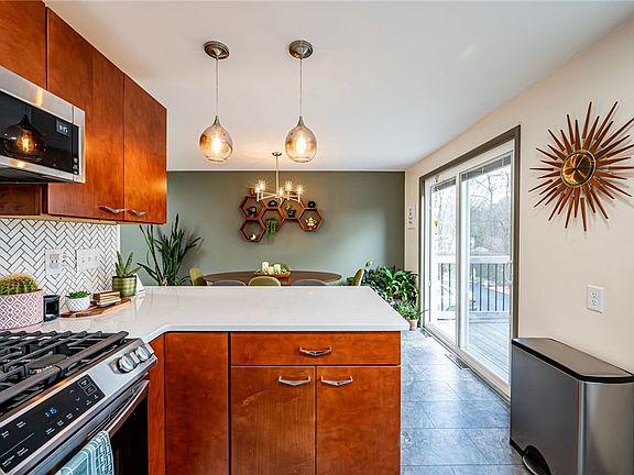 Beautiful and inviting! Updated 3 bedroom 2 .5 bath ranch home in Plum. Open floor plan. Cherry kitchen with S/S appliances. French Door LG refrigerator, Samsung five burner gas stove, S/S dishwasher & microwave oven. Kitchen has an undermount sink with Quartz counters, recessed lighting, cabinets have soft close drawers and a lazy Susan. Living room, & bedrooms with hardwood floors. Bathrooms, flooring, lighting, roof, 2020. Furnace 2014. New front porch, roof. Master bathroom has been updated to a tub / shower combo. Master bathroom also has a blue tooth speaker. The second bathroom has a walk-in shower, vanity with a vessel sink. The lower level has a finished game room with a big window, another room that could be an office or exercise room. Large laundry room and storage area. Sliding glass door in dining area leads to a 12x15 composite deck. 1 car garage. Nice yard.