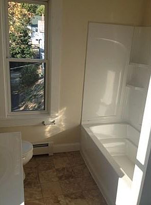 Absolutely beautiful, newly remodeled apartment in a centralized location. Everything in this apartment was remodeled in 2013. Kitchen contains Stainless Steel appliances, solid wood soft close cabinetry. Master Bedroom features wall to wall carpeting, and modern paint choices. Second bedroom features the same and could also work as a home office. Bathroom has bath and shower, newer fixtures and hookups for your stackable washer and dryer. In addition, the heating system features a recenly replaced gas burner and newer water heater. There is a private front porch with enough room for chairs and a table and back balcony off the kitchen for morning coffees. Off street parking completes this perfect new apartment for it's new tenants. No pets and non-smokers please due to allergies. Call today for your showing before it's too late!