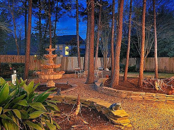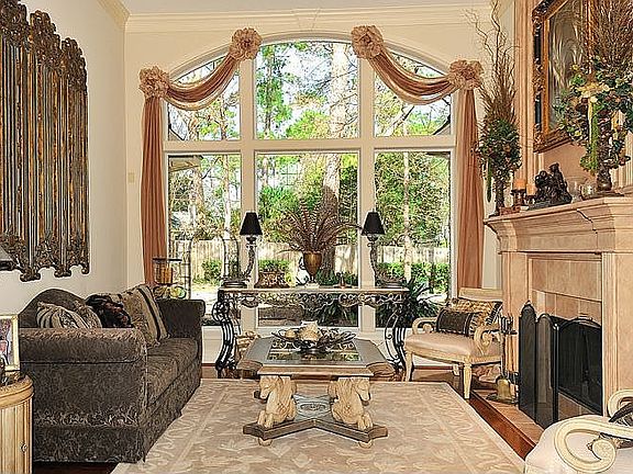 Sensational Tommy Bailey custom home on gorgeous lot! Shows like new! Beautiful trim work,built-ins,stained cabinets,lg windows & custom finishes throughout. Open concept w/excellent use of space:dual staircases,gourmet isl kitchen w/dbl oven,granite counters & breakfast bar opens to breakfast rm;both formals;den w/gas log FP;master suite down w/spa-like bath;gameroom up;theatre rm(equip & furniture stay). Lush landscaping including 4 tier fountain. *New upper zone A/C in 2011* Tons of storage!