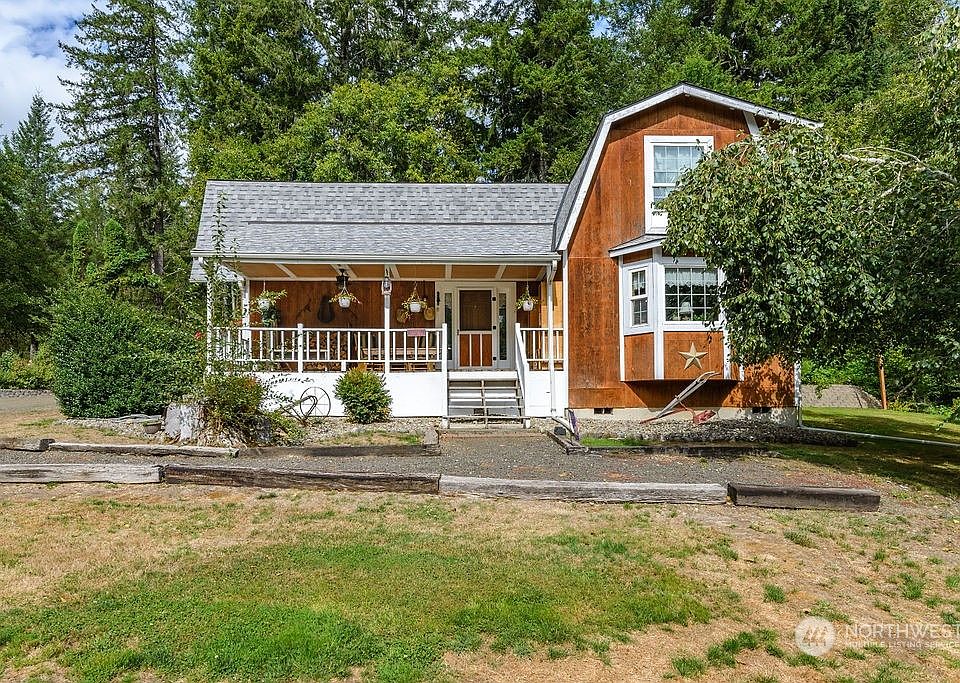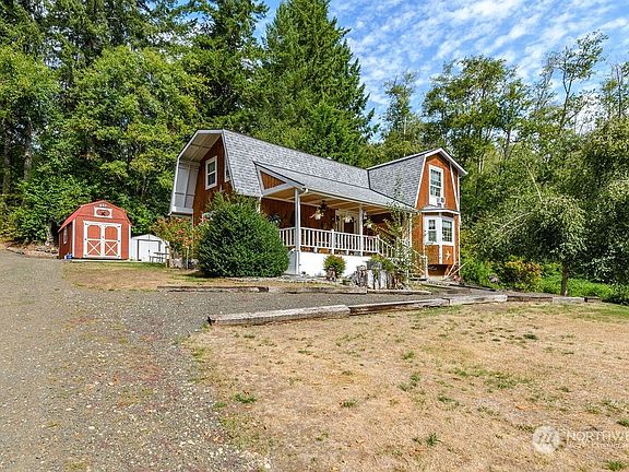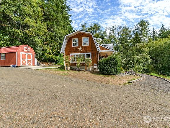Rare opportunity to own your own private oasis in the country! Spacious home on 6 acres complete w/ beautiful views, a barn, bunkhouse & additional outbuildings w/ power, plus walking/riding trails, seasonal creek & camping sites/RV parking! Home boasts great layout - cozy living room w/ woodstove & bright, open kitchen w/ large island & easy access to back patio. Soak in clawfoot tub on main. Upstairs offers 3 bedrooms, bath & lots of custom storage. Enjoy views of your park like setting from primary bedroom! New roof in 2019. So many areas to gather w/ friends to take in the peace & serenity. Rustic meets modern in this amazing property!