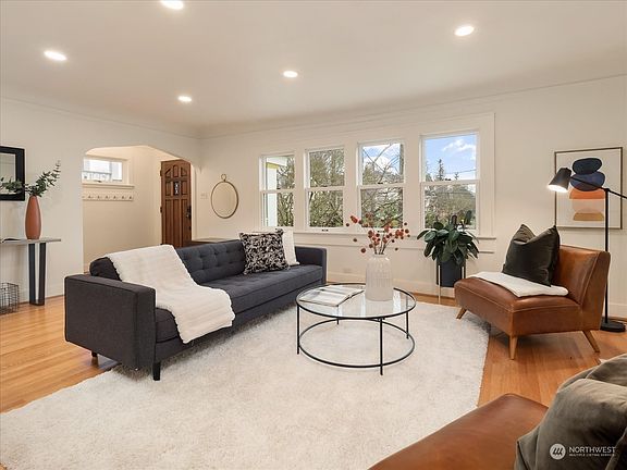 Timeless 1926 home in sought after Phinney Ridge. Welcome guests into light filled living room w/ picture windows, newly refinished hardwood floors & cozy fireplace this opens into spacious dining room with more elegant period details which flows into gorgeous updated kitchen complete w/ custom eat-at counter, cherry cabinets & SS appls. Two bedrooms & full bathroom complete the main floor. Upstairs: huge primary bedroom w/ attached 3/4 bath, walk-in closet & bonus room. Lower level for extra living space or MIL, which includes: 4th bdrm, 3/4 bth,2nd kitchen, Lg family rm & laundry. Added bonus of a new heat pump w/ A/C. Outside, enjoy BBQ deck & grassy backyard. Right around the corner from fabulous Phinney shops,cafes' & Ken's grocery.
