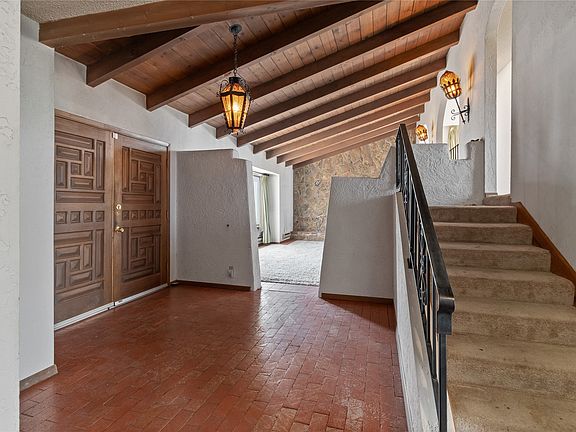 Situated on 5 acres with breathtaking views of the Sandia and Ortiz Mountains, this 2,968 sqft main house welcomes you through a charming courtyard. The home features Southwestern touches. Originally built in 70's and is a custom home, the property includes an attached 2 car garage and multiple levels. Enjoy country living in a premium location just minutes from downtown, where horses are welcome. This home needs updating and some maintenance work. Property being sold AS-IS.
