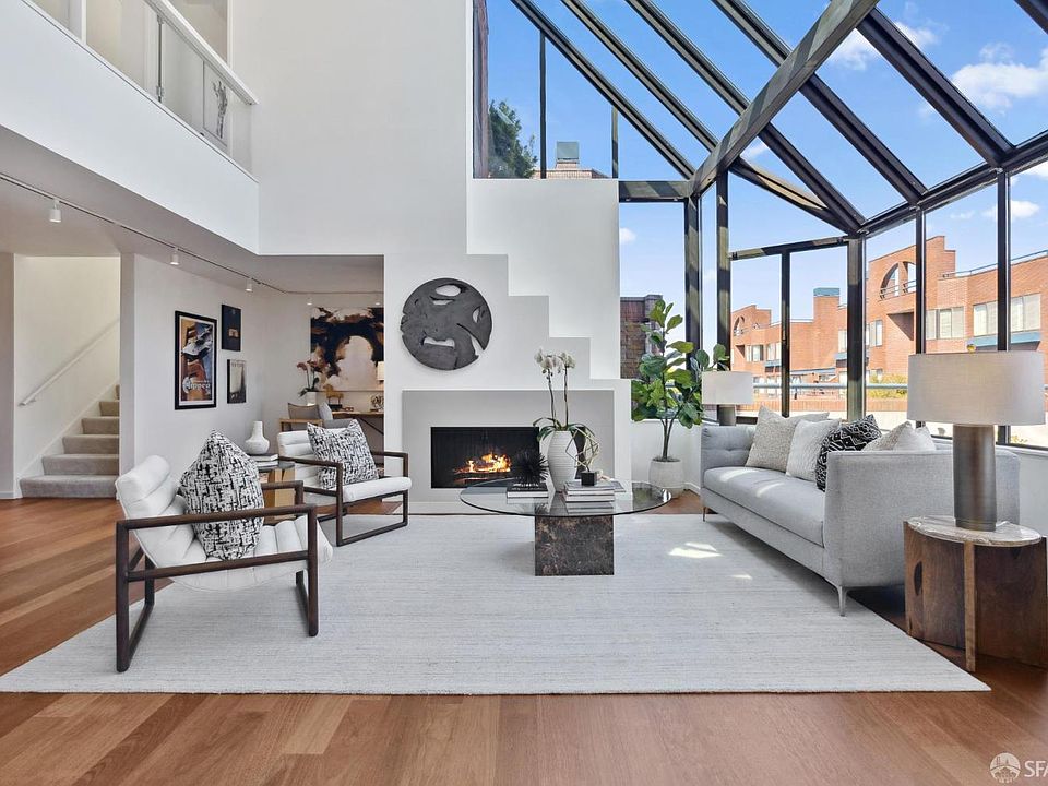 One of the largest residences at the Golden Gateway. This exceptional house-like condominium offers 2,438 square feet on three levels. Designed for elegance & comfort, this home features 3BR 3BA + Den, two patios and a rooftop terrace with sweeping views of the Bay Bridge, downtown skyline and the city's most iconic landmarks. The dramatic main level is defined by soaring 17-foot ceilings, expansive east-facing windows that capture the morning light and an open modern layout. The nicely updated kitchen features new quartz countertops, stainless steel appliances, walk-in pantry and patio for convenient grilling. Upstairs, the primary suite is a quiet retreat, featuring a spa-inspired bathroom with luxurious finishes, a walk-in closet, and wood-burning fireplace. A second bedroom and laundry room complete this level. A wide interior staircase leads to the crown jewel: A private rooftop terrace with commanding views of the Bay Bridge and many of San Francisco's most iconic landmark buildings. One-car parking, abundant storage, and the rare scale and versatility of a true house-like residence.