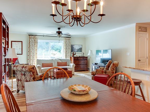 Maintenance Free Living At It's BEST! This lovely first floor open concept three year old condominium has all the amenities. A chef's kitchen accented by custom cabinetry with soft close drawers and antique German glass, granite counters adorned with a custom edge, Kitchen Aid Appliances and upgraded light fixtures; two bathrooms with upgraded cabinets, lighting and fixtures, and throughout the home crown molding, luxury vinyl Hickory flooring, upgraded lighting built in bookcases, renovated laundry room/work area and much more. Walk out of the living room to your back patio and enjoy the serenity and privacy of your tree lined surroundings. All of this in a convenient location that is close to everything. Don't miss the opportunity to own this truly luxury condo.