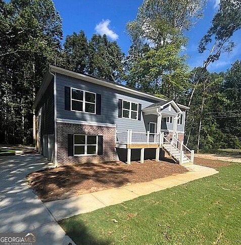 What if your next move could be a spacious new construction on over an acre? Welcome to 170 Pleasant Point Way - a beautifully crafted new construction home nestled on a spacious 1.10-acre cul-de-sac lot. Conveniently located just 23 minutes to the airport, 7 minutes to shopping, and 12 minutes to Piedmont Fayette Hospital. This thoughtfully designed plan features an elevated front entrance and main level that capture natural light and offer added privacy-ideal for those who appreciate a home with character and distinction. This home features a large living room with a fireplace extending into the kitchen that is designed to impress with quartz countertops, a center island with seating for two, and stainless-steel appliances. The kitchen opens to a covered deck expanding the living space outdoors. The heart of the home flows effortlessly into an inviting entertainment area downstairs with a separate entrance, oversized 4th bedroom, full bathroom and pre-wiring for a corner mini-kitchen. The owner's suite on the main level includes a contemporary freestanding tub and separate shower, creating a private retreat. Enjoy the charm of a welcoming front porch, tasteful brick accents on the exterior, and a 2-car garage with additional storage space. For added convenience, a storage area with double doors sits beside the garage, perfectly sized to accommodate a riding lawn mower or outdoor equipment. The downstairs family room has been virtually staged as a recreation room to showcase its incredible versatility. Whether you envision a game room, home theater, gym, or casual hangout space, this area offers endless possibilities to suit your lifestyle. This is your opportunity to own a thoughtfully designed home in a quiet, cul-de-sac setting with generous outdoor space. Built in 2025, everything is brand new and waiting for you to make it your own. For peace of mind, this home comes with a 2-10 New Construction Warranty, providing coverage and confidence in your investment. Please use shoe covers to the left of front door when walking on carpet.