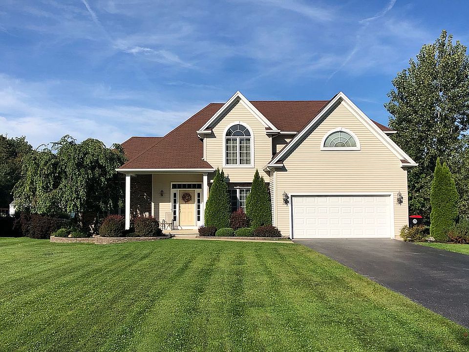 Situated on just over 1 acre of land, this beautiful colonial offers a spacious home plan and many amenities that are sure to appeal to today’s homebuyers. Highlights include 2,217 square feet of living space with 4 bedrooms, 2.5 baths and a 2.5 car garage with built-in work bench. A two story foyer leads to a formal dining room, half bath, and a large eat in kitchen with island and plenty of cabinet space. Brand new stainless steel appliances are included with this home; refrigerator, dishwasher and range. The great room boasts a 13 foot ceiling with a gas fireplace. A first floor laundry room is located just off the mudroom. On the second floor the owner’s bedroom has a tray ceiling, two walk-in closets and a large ensuite bathroom with a vaulted ceiling, ceramic tile shower and separate soaking bathtub. Three secondary bedrooms share the main bath. The home also has a hard-wired security system. Through sliding glass doors, a custom made 656 square foot deck with a covered pergola leads to a large 27 foot above ground saltwater pool. The backyard also includes a fire pit area, a playground with sandbox, and a 16 x 20 foot shed. Mature trees and beautiful landscaping surround this home. This home is located in the Lancaster school district. **Please call or text (716) 867-6641 for more information or to schedule a viewing**