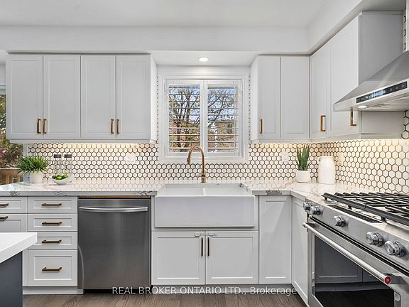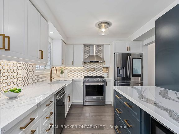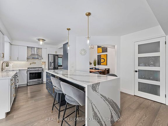 Fully renovated and truly turn key 4+1 bedroom home in the heart of Maple. Every detail has been finished so you can move right in and enjoy without sacrificing. The main floor offers a front room that can serve as a home office, playroom, or cozy living room, a separate dining area, and an open concept family room that connects to a custom chef's kitchen with Quartz counters, an oversized waterfall island, marble backsplash, stainless steel appliances, and a walkout to a private yard. Upstairs features four spacious bedrooms including a spa inspired primary retreat with an upgraded ensuite and custom walk in closets. Two bedrooms share a convenient Jack and Jill bath. The finished basement includes huge rec room, a wet bar, bedroom, and 3pc bathroom that works perfectly for guests or multigenerational living. The exterior has been updated with newer garage doors and an interlock walkway leading to a fully fenced backyard designed for low maintenance living with interlock patio space for outdoor entertaining and a grass area for kids and pets to enjoy. A rare find where everything is done and move in ready.