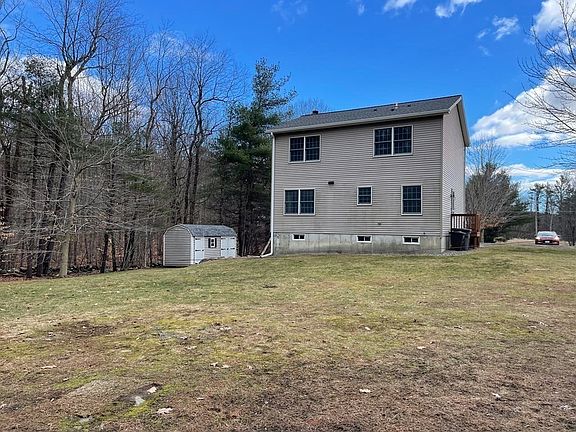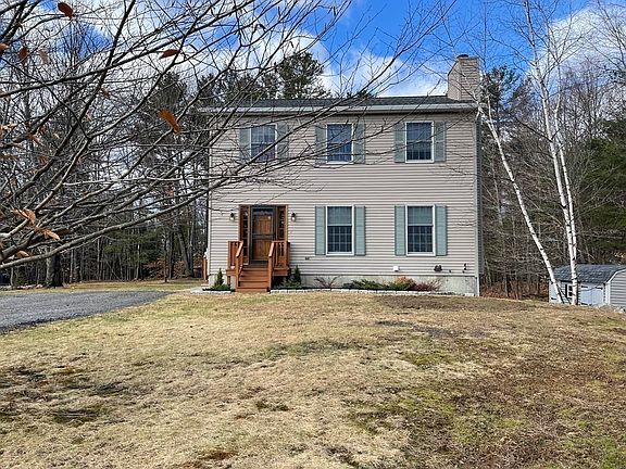 This Home sits on 2.2 Acres. Entrance has a beautiful Front door, slate floor with a coat closet and half bath. Eat in Kitchen with a pantry closet and lovely light wood cabinets. Dining room has hardwoods. Living room features a beautiful wood mantle fireplace ( with an insert blower), oversized windows and hardwoods. Second floor has a half bath and Three bedrooms with the Main bedroom featuring a double closet space and full bath. Basement includes a walk out, washer and dryer and ready for you to finish with your design. The large yard is great for playing sports, adding a pool, patio or deck. Also includes a large shed. This home is perfect for commuters, only 5-10 minutes to major highways.
