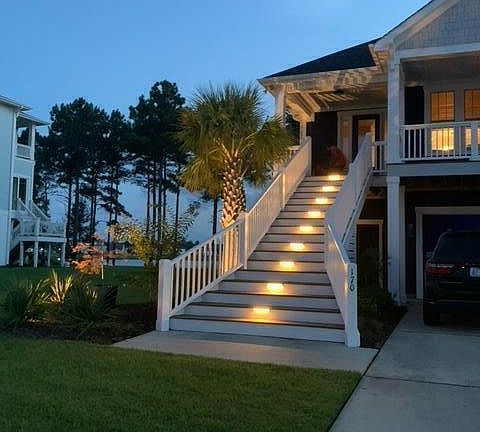 Enjoy luxury coastal living in this exquisite home with an abundance of upgrades. The lot has an amazing view unlike any other of Spicer Lake which you can enjoy from your balcony or screened in patio. The lush landscaping has been meticulously maintained and features a bluetooth watering system for the entire property. As you make your way inside the home you will enjoy the bright open space perfect for entertaining. The kitchen is every chef's dream equipped with a commercial grade gas oven, stainless steel appliances, a farmhouse sink, and recessed lighting. Retreat to the master suite and enjoy your private balcony with a spectacular view of Spicer Lake, a luxurious bathroom with a custom dual vanity, and walk-in shower with subway tile. As you take the elevator downstairs you will find two additional bedrooms and an additional living room and upgraded custom mini bar. Summerhouse on Everett Bay has all the amenities you could ever want! Featuring six scenic lakes, two gated entries into the community, resort style community pool with lazy river, two tennis courts, breathtaking clubhouse, boat launch with direct access to the intracoastal waterway including day docks and pier, on-site boat storage, picnic areas, nature park with fire pit, walking trails, open air pavilion, playground, and fully equipped fitness center with lockers & showers.