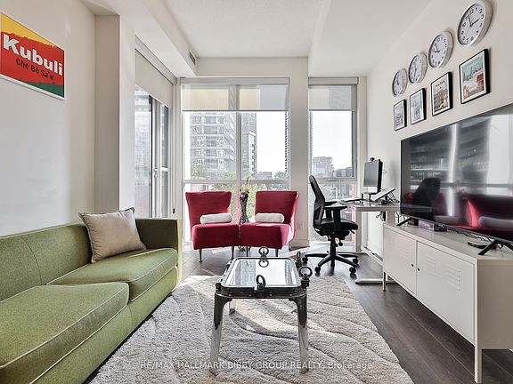 This Bright, Spacious & Modern, East-Facing One-Bedroom Masterpiece In One Park Place Offers Convenience, Luxury As Well As A Front Row Seat To A Tranquil Tree-Lined View From Your Own Private Balcony! The Expansive Living & Dining Rooms Are Designed For Seamless Entertaining And Offer An Abundance Of Natural Light & Rare Soaring Ceilings Throughout. The Modern Kitchen Showcases High-Quality Design & Functionality With A Rarely Offer U-Shaped Layout, Convenient Breakfast Bar & Ample Storage. The Spacious Primary Bedroom Retreat Offers A Serene Setting With A Large Closet. The Spa-Like Four Piece Bathroom Includes A Palette Of Modern Materials & Fine Finishes. World Class Amenities Include Guest Suites, Fitness Facility, Squash & Basketball Courts, Theatre, Party Room, Bike Storage & Outdoor Terrace W/ Bbq's. Steps To George Brown, Nelson Mandela Public School, Pam McConnell Aquatic Center & Park Across The Street. Public Transit At Your Doorstep. Easy Access To Highways, Distillery District, Financial District, St. Lawrence Market, Riverdale, Leslieville, Cherry Beach, Martin Goodman Trail And Biidaasige Park.