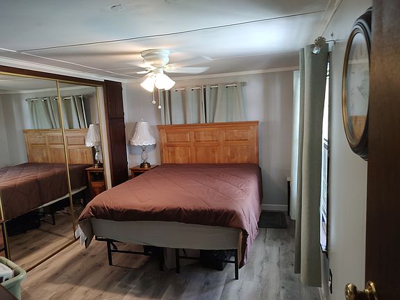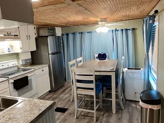 This lovely 1 bedroom, 1 bath home has plenty of upgrades!  This home brags of a new ceiling,   plywood subflooring, laminate flooring, ceiling fans, new windows on the carport side of the home, new window basing at the sills.  Air conditioner was replaced in 2022.  Home comes partially furnished:  bed, sofa, fridge, bedroom TV, and washer/dryer. Community features resort-style amenities, heated pool, hot tub, fitness center, pool table, and dog park