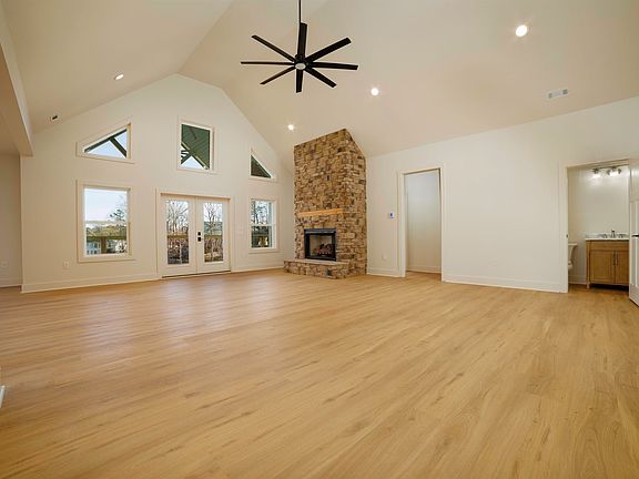 Just Completed New construction 4/2.5 on beautiful lot with awesome view but with the protection of a COVE. Easy walk down to great yr rd water with seawall in place and floating platform dock. You will love this open floor plan home with cathedral ceilings, chef's kitchen, large island, stone fireplace and stone accents on the main level. There's a large laundry room and pantry off of the kitchen. The master suite has a bedroom over looking the lake, with master bath with dual vanities, soaking tub, separate tiled shower and large walk in closet. There is a large deck across the back of the home that is both open and covered. Downstairs you have 3 bedrooms, a full bath and another family room. The home is beautifully landscaped with stone steps down to the water. It has plenty of parking and a concrete driveway. You'll fall in love with the home, the view and the great cove!. Come take a look. You don't want to miss this one!