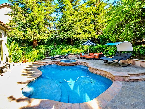 Welcome to this 2-story, 4 bed, 3.5 bath, & 3,732 square foot home in a quiet cul-de-sac of the Hillsborough Estates at Wood Ranch! The gorgeous entry invites you inside where you will find an open formal living and dining room with travertine floors, custom window treatments, plantation shutters, & french doors leading to the outside patio. Past the staircase is the stunning gourmet kitchen with granite island & countertops, Thermador fridge & stove, convection oven, Meile food warmer, Restoration Hardware lighting fixtures, stovetop pot filler, & breakfast nook overlooking the spacious family room with built-in entertainment center & fireplace. Take refuge in the downstairs bedroom with full bath. Upstairs, the master suite delights with fireplace & sitting area. The master bath contains a spa tub, glass shower, marble vanities, & large walk-in closet. Down the hall, a bonus room with built-in work area & 2 bedrooms are the perfect fit for a family home. Outside, an entertainer's paradise with pool & spa awaits. Throw the ultimate summer bash with a BBQ Island with fridge & fire pit sitting area. Additional amenities include solar panels (owned), large laundry room, & 3-car garage. This estate is truly a masterpiece! 2019-07-19