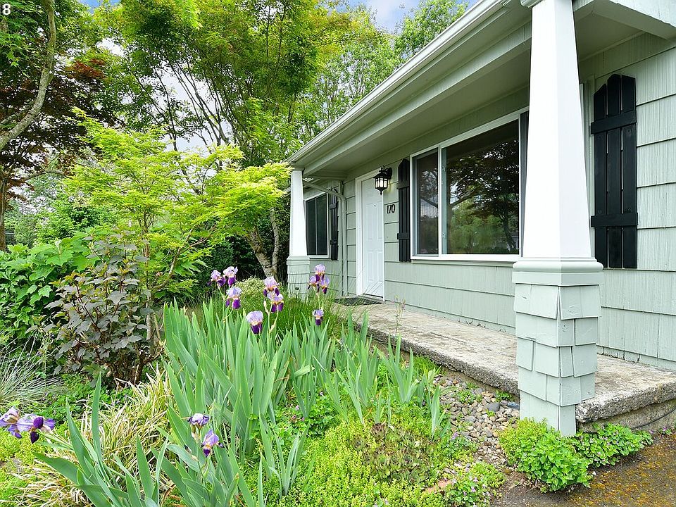 Charming Garden Cottage! This sweet home is nestled on a large lot with beautifully landscaped gardens, large deck, covered patio, and garden cottage. Newly remodeled kitchen and bath with high end touches, quartz counters, single-basin Blanco sink, crisp cabinets. Original hardwood floors, cozy woodstove plus new ductless heat system, roof, garage door, french doors and water heater. A private sanctuary near Oregon's best Main Street!