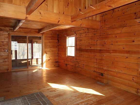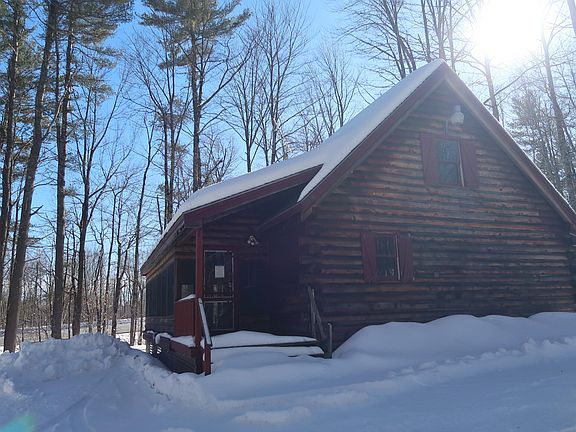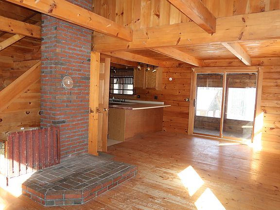 Log style, 2 bedroom 1 1/2 bath cape located on 2 +/- acres in picturesque Wilton Maine, just minutes from Wilson Lake. Features include a loft area, a large enclosed porch and another large open porch as well as a detached 2 car garage with storage above. A must see!