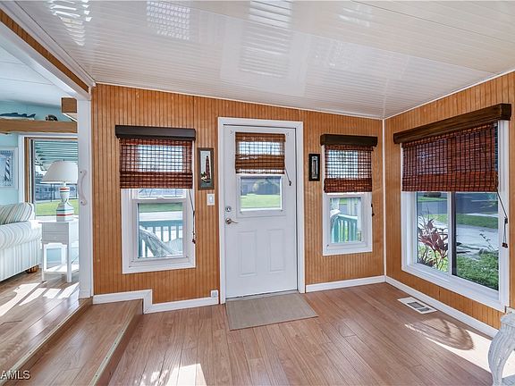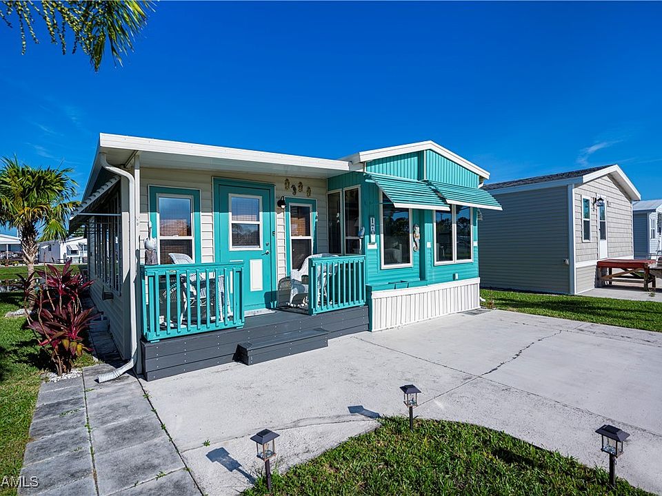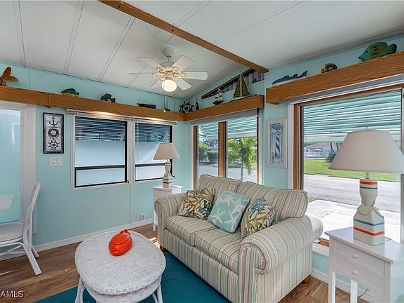 Beautifully maintained and upgraded remodeled lakefront manufactured home located in Fountain View RV Resort, 55+, showcasing a relaxed Florida Beach Décor and being sold turnkey with quality furnishings. This 1-bedroom, 1.5-bath home offers approximately 744 square feet of living space and is thoughtfully designed for comfort and coastal style. Enjoy tranquil lake views from the back patio—perfect for unwinding or entertaining. Upgrades include: newer air conditioning system, a fully remodeled kitchen with granite countertops and thermal windows, Florida Room with thermal windows and a front porch constructed with low maintenance recycled plastic decking. The spacious primary bedroom features a king-size bed, while additional accommodation includes two sleeper couches and a convenient Murphy bed. The in-home laundry room adds practicality for everyday living. Located directly across from the activity center, the property also benefits from extra green space and guest parking just steps away. Community features include a heated pool and hot tub, tennis, volleyball and basketball courts, bocce ball, shuffleboard, and a calendar full of fun and social activities for all skill levels. Conveniently located with easy access to Punta Gorda, Cape Coral, and Fort Myers, this home is just a short drive to beautiful beaches, boating, golf courses, restaurants, shopping, and entertainment. You own the land—no land lease here—and with very low HOA fees of just $230 per month, you’ll enjoy full access to community amenities without breaking the bank. Don’t miss the opportunity to own this rarely available lakeside gem. Schedule your private tour today and make this waterfront retreat your new home!