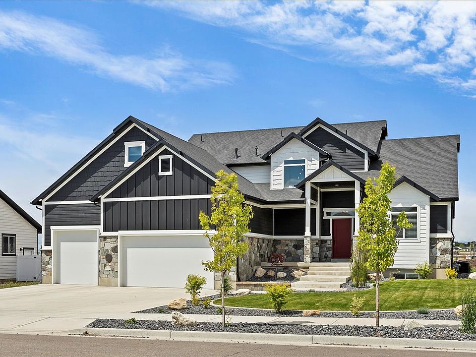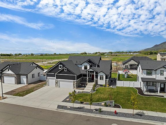 This beautifully upgraded home offers open-concept living with a modern kitchen, ideal for entertaining. The main level features a spacious primary suite and laundry for convenient one-level living. Upstairs, a large bonus room provides versatile space for a home theater, game room, or play area. The oversized four-car garage includes an EV charger and ample storage. The basement is in the process of being finished with a full kitchen, laundry, and private walkout entrance-perfect for multigenerational living or guest accommodations. Enjoy stunning mountain views, a fully landscaped yard, and a great location-just 20 minutes to Hill Air Force Base, with quick access to I-15 and only minutes from Willard Bay State Park.